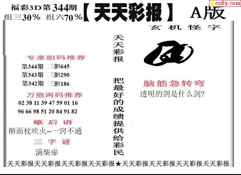 福彩3D2025344期天天彩报A版 天天彩报B版
